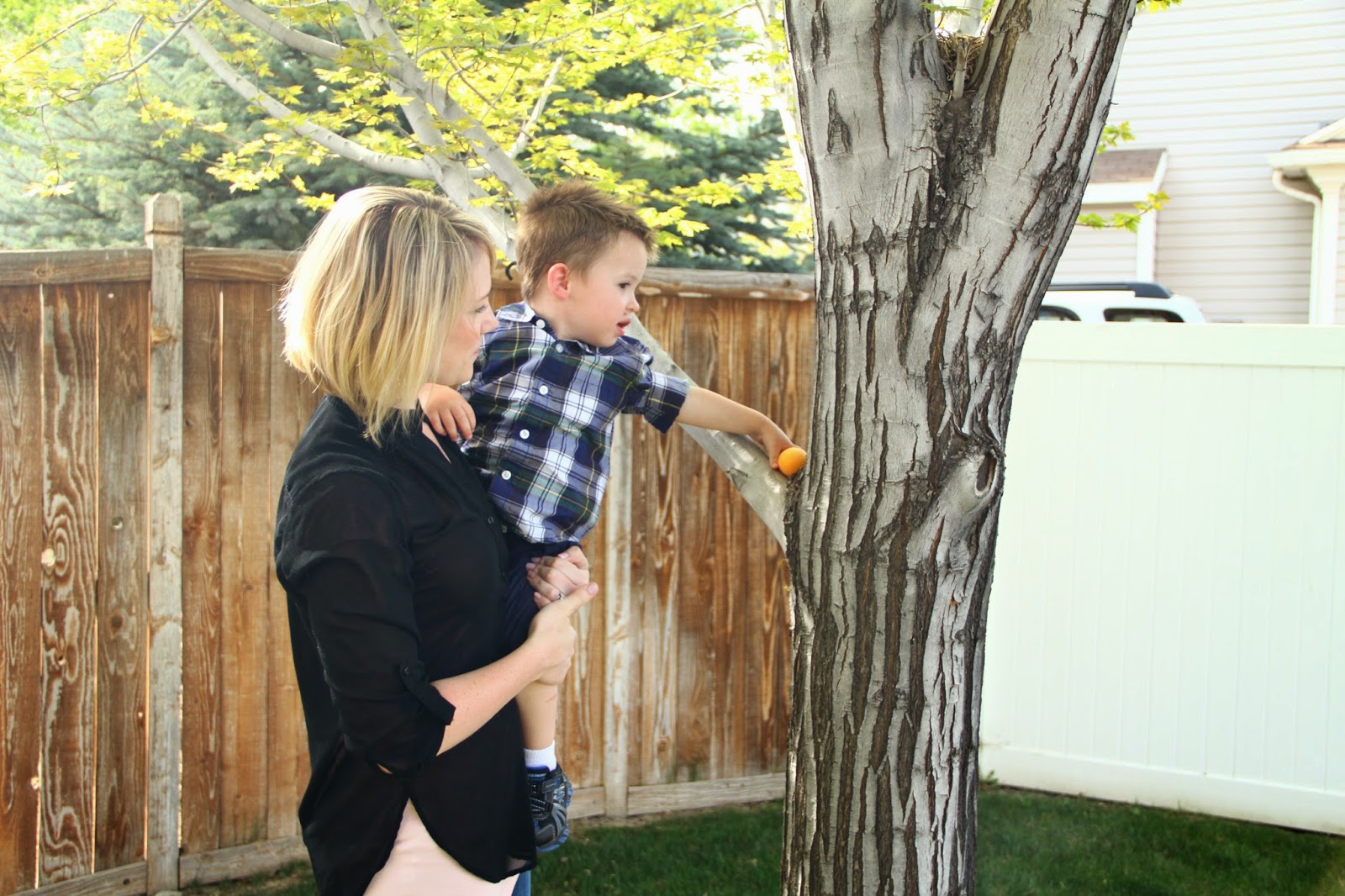 Scoring eggs at Grandma and Grandpa Paul's house. They used real, hard-boiled eggs for their hunt. Ty was quite confused when it wasn't candy he found inside, LOL
